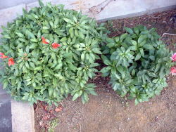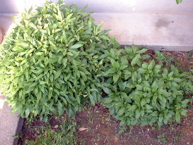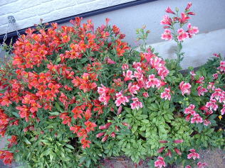 写真左は、2006年4月23日の様子。右は5月7日の様子です。アルストロメリアは、根付いてしまうと本当に強い草花だと感心します。 |
