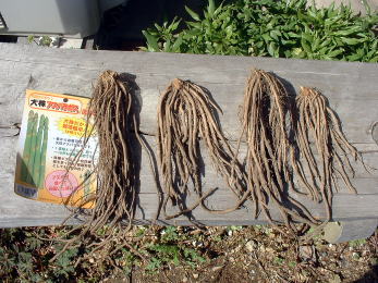 4月3日 これまで収穫できていたアスパラがだめになったので、ホームセンターで株を購入。 3株を露地栽培用とし、一株は大型ポットで栽培することにしました。 以前テレビで見たホワイトアスパラを作りたいと思いやってみることにしました。 |