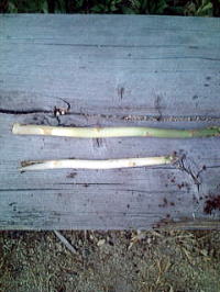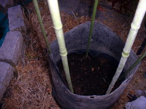栽培一年目は収穫せずに栽培だけに専念することにしました。 茎もまだ細い。 |
