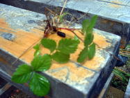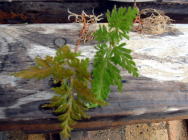 家にあった植物を使用。左:イワヒバ、中央:ワイルドストロベリー 右:最初の作品(イワヒバ) |