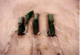 | どの挿し木の大きさでも充分発根していました。挿し木は少々大きな木でもOKだと思います。 | ||