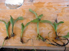 | エビネの人工交配苗(無菌播種)を友人からもらったので、順化に挑戦しました。時期的にどうか(暑すぎる?)かと考えましたが、いくつかが雑菌の繁殖が培養びんの中に見られたのでおもいきりました。 | ||