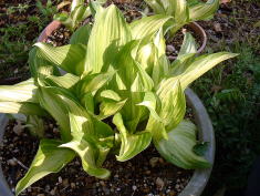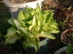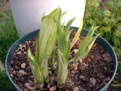 | ギボウシを植え付けて、7,8年になります。いつもお世話になっている、NHK「趣味の園芸」の4月号に’ギボウシの株分け’が掲載されていたので、株分けをすることにしました。 | ||