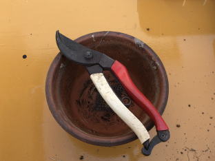 株分けした1株を植え付け | 残りの株は鉢植えにしました。 |