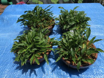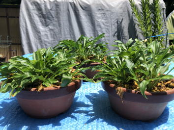15年前と同じように4鉢に植えました。数年ごとの植替えが良いようなので、めんどくさがらず植え替えると、どんどん増えていきそうです。 |