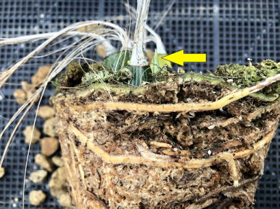 | 上段右側の画像を見やすくしたものです。矢印の先は新芽 |