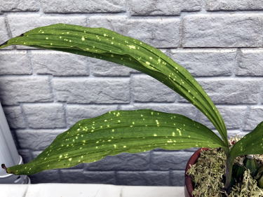 我が家のホシケイランです。この後花のつぼみは、見事にナメクジの食害にあい、花を見ることができませんでした。 |
