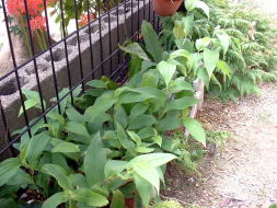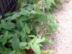 タイワンホトトギスを地植しています。しかし、タイワンホトトギスは花が咲く頃は草丈が非常に高くなり、姿が乱れてしまうので、何とか短い草丈で花を咲かせたいと考え、7月に思い切って短く切り込みをしました。その後の生育の様子です。 | |