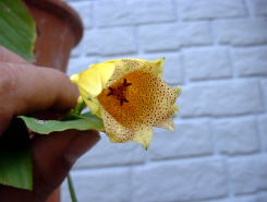上段左が土佐ジョーロホトトギスの花 上段右側がコハクホトトギスの花 右側が10月15日のコハクホトトギスの様子です。 |