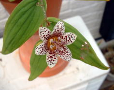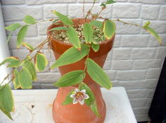 土佐ジョーロホトトギスです。 写真左側が、6月6日の様子です。右側が10月15日。 ここ3年ほど全く植え替えをしていません。管理は、エビネを管理している棚で行なっています。(遮光している)日常の管理は水やり程度なので、毎年葉が病害虫で少し枯れてしましますが、毎年花を咲かせてくれます。 |