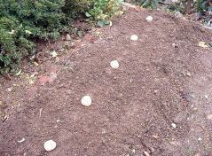 3月7日ジャガイモを植え付ける畑を作りました。ジャガイモを植え付ける間隔は30cm程度にしました。 ※画像はジャガイモが露出していますが、土の中に植え込みました。 |