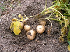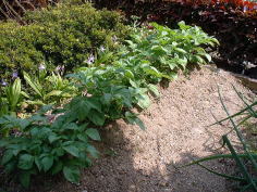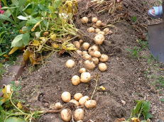 | ジャガイモは大型ポットで栽培をしてきました。今回は、露地栽培に挑戦。 | ||