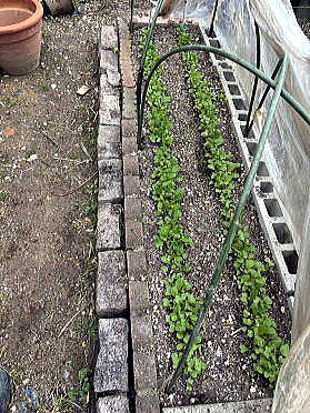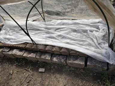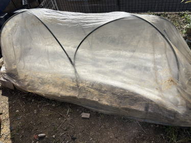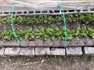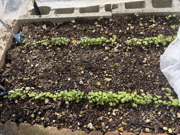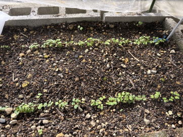 1月13日 種を2列のすじ播きして、以前使用していた塩化ビニールのシートをかけました。 発芽するか心配になったので4日後に不織布もかけることにしました |