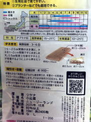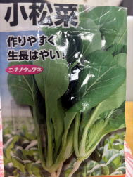← ホームセンターで購入した小松菜の種 私の住む地域は、暖地になるが、冬季に小松菜を栽培するにはトンネルが必要らしい |