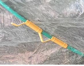 ダンポールK には左画像のようにビニールや不織布を留めることのできるパッカーが別売りであります。 価格は10個入りで数百円程度だった |
