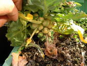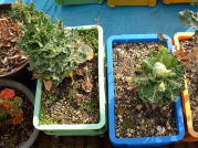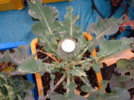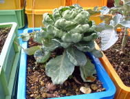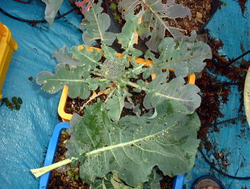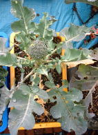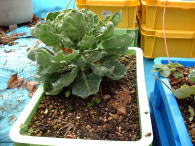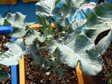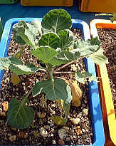 芽キャベツ、ブロッコリーともに露地植のものに比べるとずいぶん小さい。ブロッコリーはもうすぐ収穫できそう。 → |