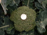 | 葉の大きさを比べてみてください。写真下側の葉が露地栽培のブロッコリーの葉です。 | |||