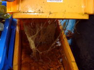 10月14日のブロッコリーの生育状況と根の状況です。葉の方は、かなり害虫の被害に遭っています。根の成長は芽キャベツに比べるとずっと旺盛です。 |