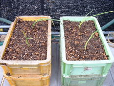| 11月8日 植え付けました。コンテナは2つ重ね。下の方は水がたまっています。 | ||