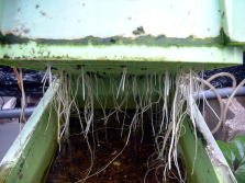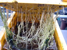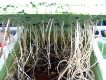 5月28日の様子。 下段、根の様子も5月28日 ← 5月29日。2つのコンテナのうち1つを収穫しました。↓ |