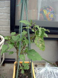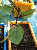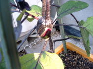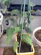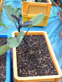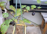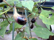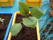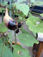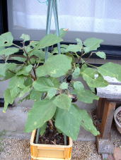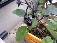 9月24日の様子。(左側写真) 何日か前にもチビナスが収穫できそうになっていましたが、写真を撮る前に奥様に収穫されてしまいました。チビナスは100ショップのコンテナでも十分に栽培できるのではないかと思います。 |