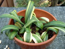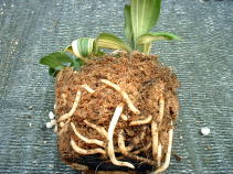 | クンシランの葉に斑が入っているものを交配した種をまいてできた苗を、水苔で植えていました。この2年間は、エビネを栽培している場所で水をやるだけの管理をしていました。 | ||
