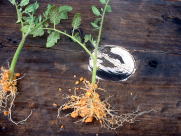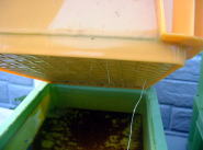 8月20日の様子。(定植1ヶ月後) コンテナの下から根が伸び始めてきました。 |