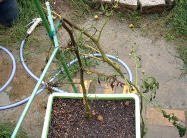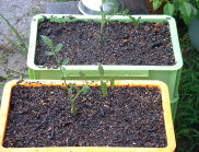 7月23日にコンテナに定植をしました。挿し芽の苗は、だいぶん前に発根していたので、もう少し早めに植え付ければ良かったかなと後悔しています。 |