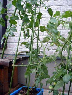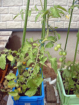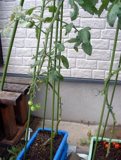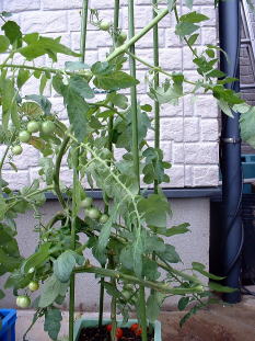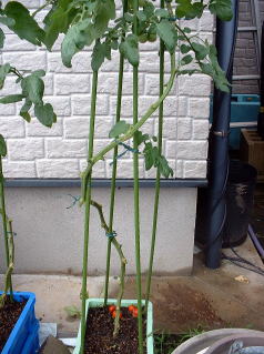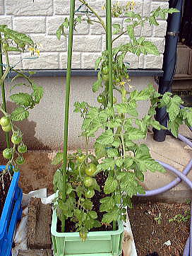 | 5月20日 順調に生育。既に実もついています。管理はわき芽とり程度の作業です。 |