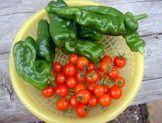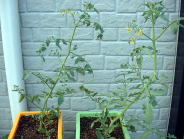 | 7月11日現在では収穫量は、これまでより多いような気がします。大きさはこれまでよりも小さ目ですが、食べるのに全く問題はありません。 上部写真ではわかりにくいですが、わき芽がたくさん出ているので支柱から何本かのヒモでつるしています。(たくさんわき芽が出ている様子がわかりにくいのが残念です。) わき芽がたくさん出ますからその処理(誘引など)が大変です。 (注意:見解はあくまでも個人的なものです。生育状況や収量を保障するものではありません) |