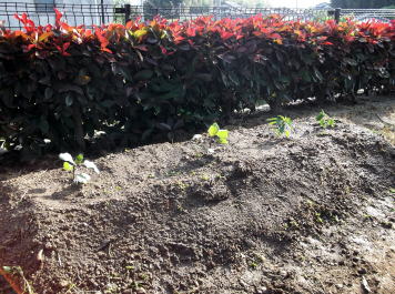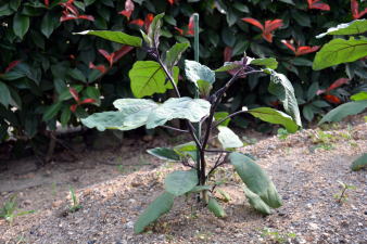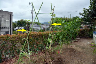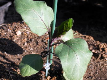 | 5月3日ナスを植えました。これまでの経験から、接ぎ木苗が栽培しやすく収穫も確実にできるので今回も接ぎ木苗で栽培することにしました。(苗は2本です) | ||