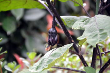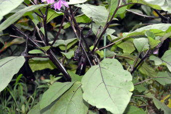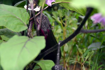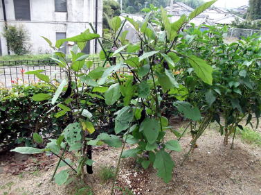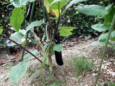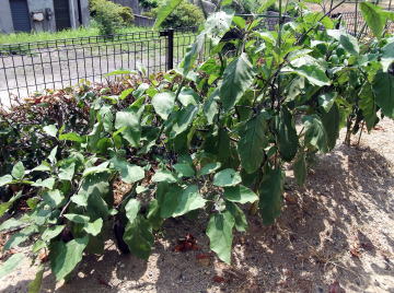 7月27日の様子です。 上段画像の状態から1ヶ月間、家庭で食するには充分な収穫がありました。現在見えているナスを収穫したら、秋ナスの収穫に向けて更新剪定の予定です。 |