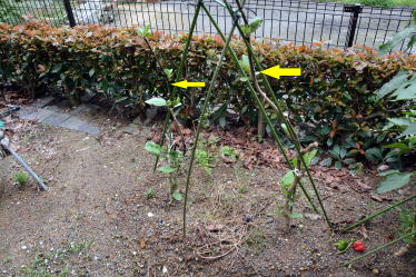6月1日の様子 これから伸ばす枝や芽を決め、下方の葉や芽を切り取りました。 ← 作業前 作業後 → |