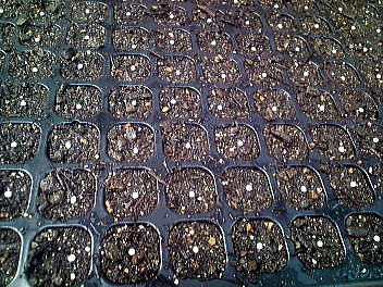 種は、前回と同じようにコーティング種子を利用しました プラグトレイに一粒づつ播きました。 8月16日です。(もう少し早く播けば良かったかな・・) |