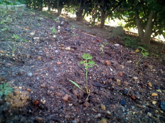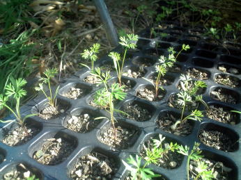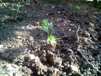7月18日に種まきをしましたが、なかなか発芽せず、2週間後に、再度種まきをしました。発芽しなかった原因はよくわかりません。毎日乾燥をさせないように水遣りもしていましたから、乾燥によるものではないと考えています。 |