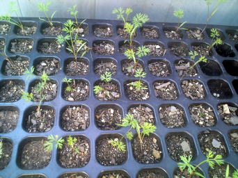 | ニンジンの栽培管理の軽減のためニンジンを移植する方法で栽培することにしました。 この方法が良いと思われるところは以下のところです(自分で勝手に思ったことです) ・畑に直接種をまくと、発芽後からナメクジなどの被害がたくさんでていたので被害が軽減できるのではないか? ・間引き作業を軽減できるのではないか? |