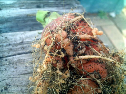 1月4日に収穫しました。 う〜ん。残念です・・・・ ネコブセンチュウの被害がでているようです。 → センチュウの被害がなければ、うまくいっていたのかな? |