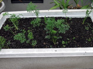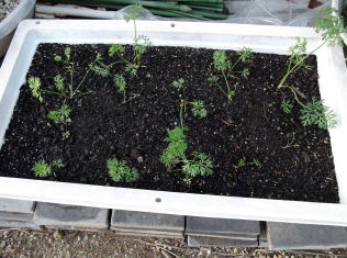 少し小さめでしたが、何とか収穫できました。ネコブセンチュウの被害が出なかったことは、販売土壌を使ったことで解決できたのだと考えます。 今回の栽培の課題としては、 @最初の種まきで発芽しなかった。 A収穫のニンジンが小さかった。 などです。そのため、使用する土壌の質については今後も検討していかなければならないと思っています。 |