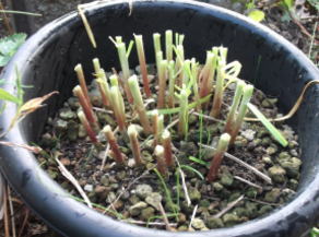 | 「栽培」というほど何もしていません。ホームセンターで苗を購入し、キク鉢に植え付けています。栽培が簡単で生育が非常に早いのでビックリしています。 | |||