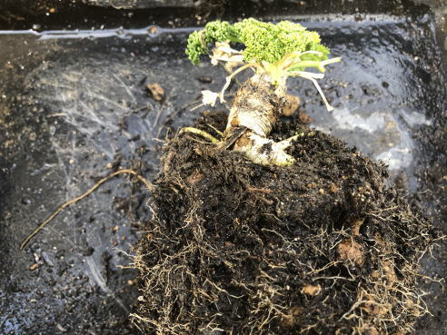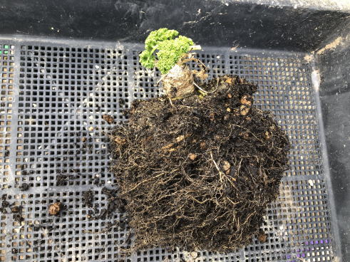 | 鉢から取り出し、周りの余分な土を落とします。 | ||||