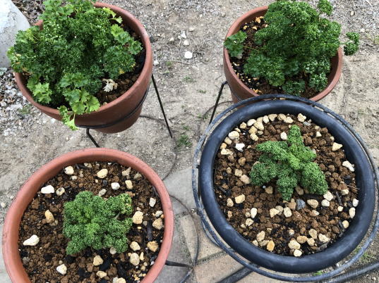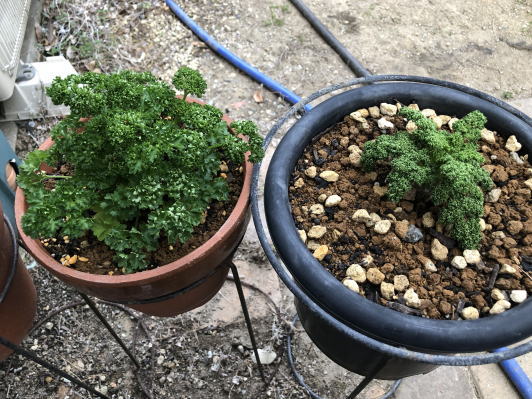 | 下画像左:左側が2年目のパセリ、右側が1年目のパセリ。(3.27) |