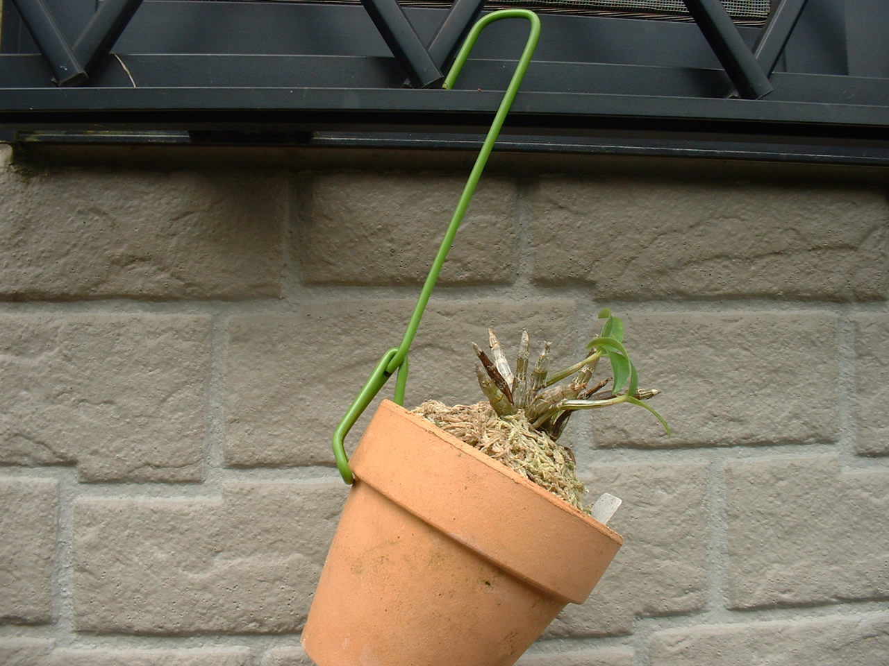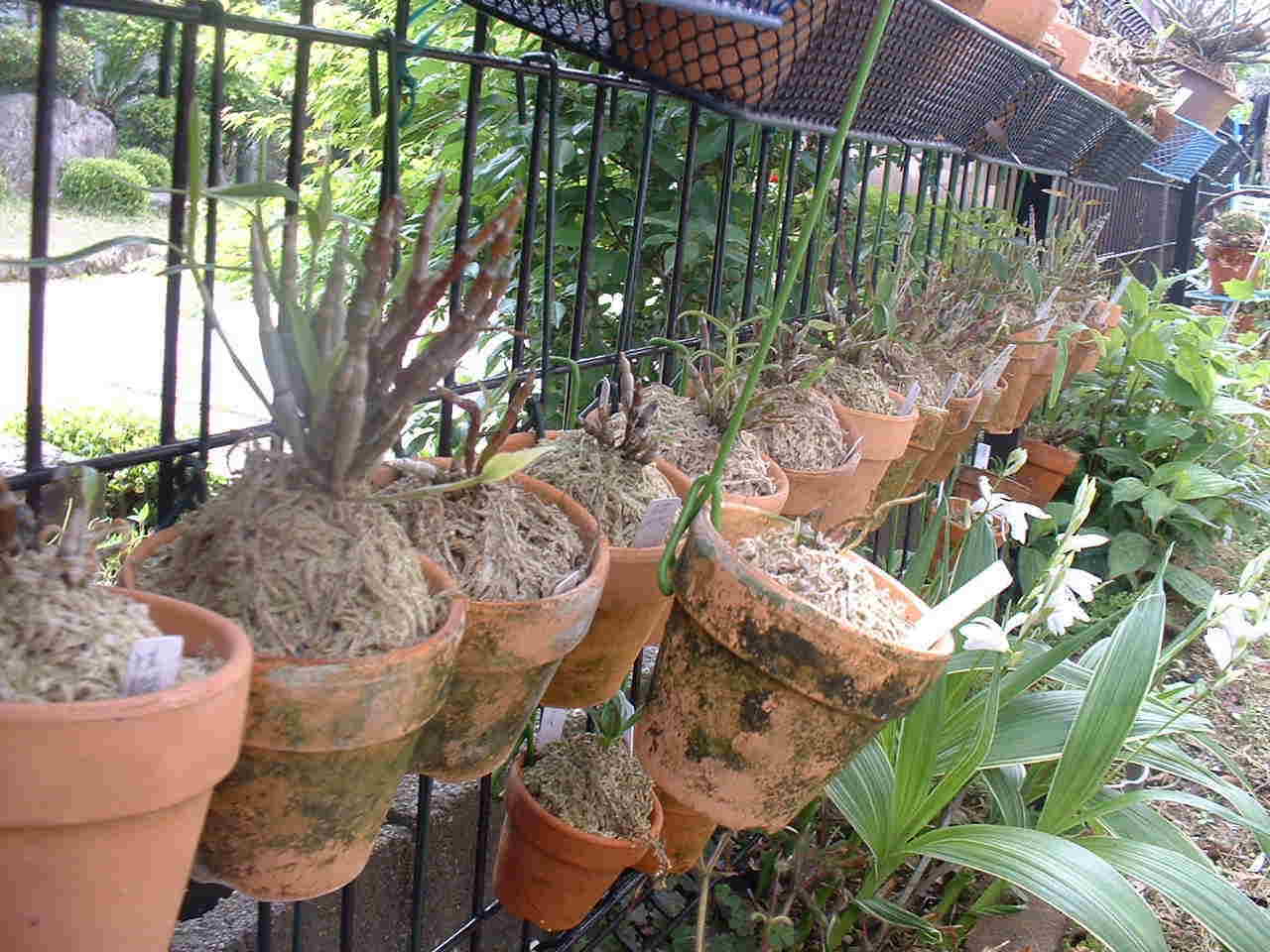 鉢を吊すことによって、フェンスを利用できたり、栽培する時の風通しなどラン栽培には大変便利です。(この金具の作り方は、「別冊NHK趣味の園芸