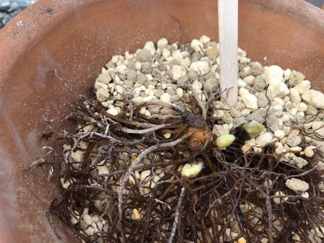 | この後、水切れをさせてしまい、この年は花を咲かせることはできませんでした。 乾燥にはとても弱いようです。 |