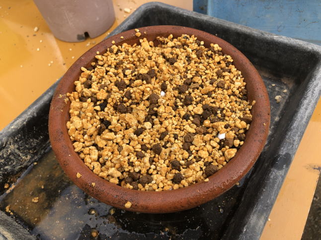 用土は鹿沼土2、赤玉土1の割合の混合用土を使用 |