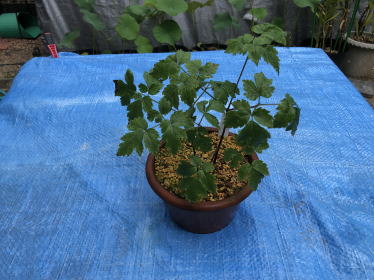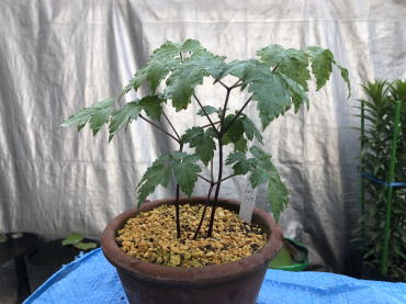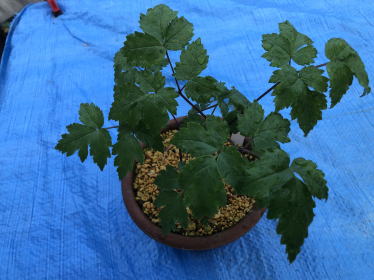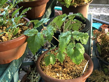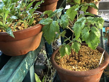 8月17日 ヤマモミジの下で、日陰になるところで管理していましたが、暑さのためか葉が傷んでいます。 蕾が少しづつ大きくなっていました。 |