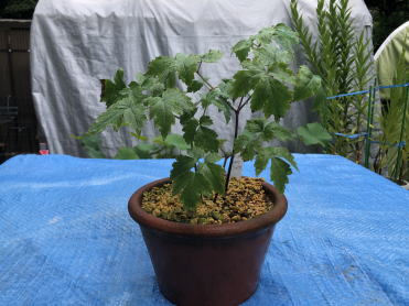 7月9日 この年は、水切れを起こさないように鉢受け皿をおいて、腰水をおこないました。 分かりにくいですが、小さい蕾が見られました。 |