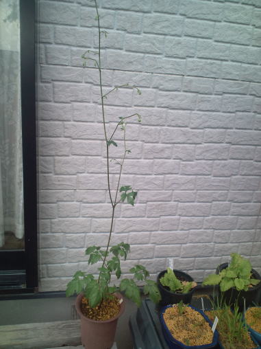 9月16日 花が咲きました。蕾のまま枯れてしまっているものも見られます。 蕾が多かったためか、花はこれまで育ててきた中で一番小さかったようです。 |
