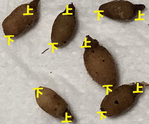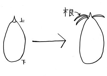 サギソウは、左の絵のように球根に上下があるようです。 植える時、は上下を確認して植えることが大切です。分からない時は、横にして植えると良いです。 |