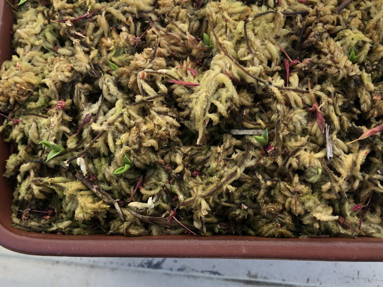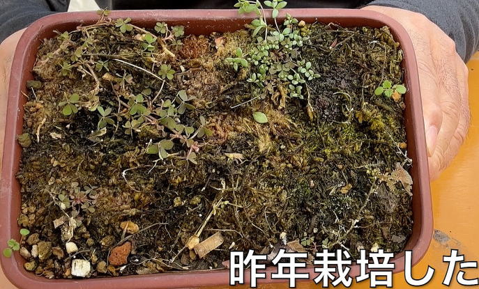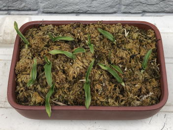 | 4月9日 サギソウの芽が出ていることを確認しました。この時期は日当たりの良い場所で管理しています。 |