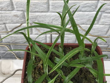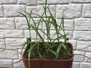 | 7月26日 花茎が伸びてきて花芽がついています。花が咲くまでもう少です。 遮光が強すぎたのか、少し弱々しい感じがします。 |